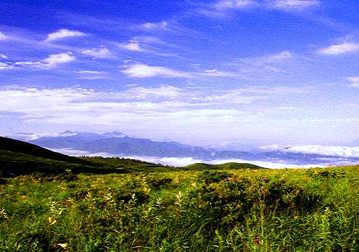 車山肩から南側も素晴らしい眺めが広がっていた。(40KB)車山肩もニッコウキスゲの数こそ少ないもののいろいろな高山植物が咲き乱れている。