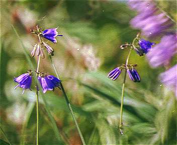 この辺りのホタルブクロは実に色が鮮やかである。これほど色の濃くて鮮やかなホタルブクロはあまり見たことがない。(18KB)