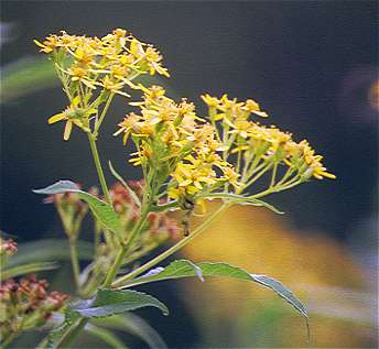紫の花の間に咲く黄色い花はアキノキリンソウと思われます。