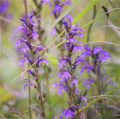 ゲストセンターに戻るちょっと前の沼のほとりにはサワギキョウの群生が見られました。