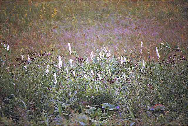 草原にはワレモコウ、イワショウブ(左の写真)と思われる花がいっぱいです。