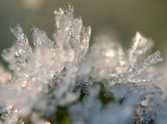 デジカメプラスルーペの第1段写真です。 道ばたの草に付いた霜を撮影してみました。
